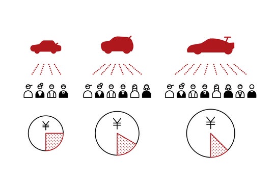 最小2~最大8分割で車を共同所有することで、金銭的な負担を大幅に削減しています。共同所有期間が終了すると、車両を売却し、売却額が共同オーナーの皆さまに分配されます。