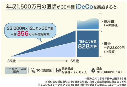 モデルケースでは、掛金部分だけでも約356万円の節税効果を得ることができる
