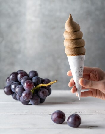 「巨峰ティーソフトクリーム」は、旬を迎えた香りがよく人気が高い山梨県産 “葡萄の王様”「巨峰」を使用し、巨峰の旨みを最大限に引き出したソフトクリームです。巨峰に、スッキリとした爽快感のある味わいと香りのウバティーの茶葉を丸ごと粉砕して合わせ、巨峰とウバティーともに高め合えるこだわり抜いたバランスで仕上げました。ひんやりと軽い食感の巨峰ティーソフトクリームをお楽しみください。