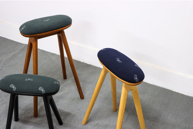 今回はその取り組みの一環として「ミナ ペルホネンの残布を使ったスツール」をナガノインテリア(福岡県)と共同で製作しました。
