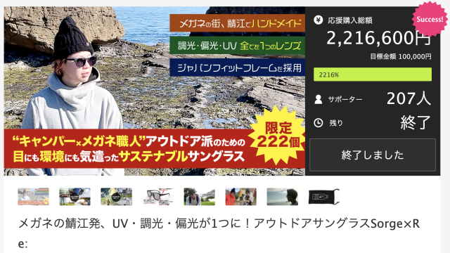 第1弾として、サステナブルなアイウェア「Sorge×Re:」を発売し、Makuakeでわずか2週間で完売。