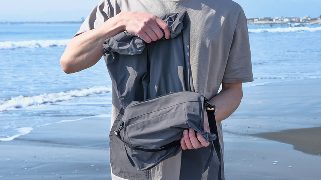 『ポンチョが、サコッシュやレジャーシートに変身』