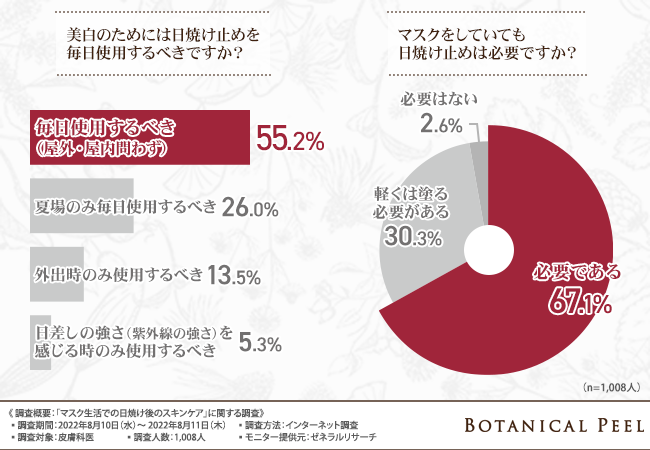 そこで、『BOTANICAL PEEL』(https://www.botanical-peel.com/)を販売する株式会社CREDEAは、皮膚科医を対象に「マスク生活での日焼け後のスキンケア」に関する調査を実施しました。