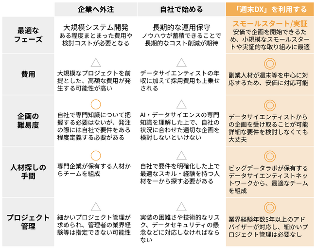 外部人材のノウハウとリソースを借り、AIやデータ活用の実験的取り組みやプロトタイプ開発を安価に実現