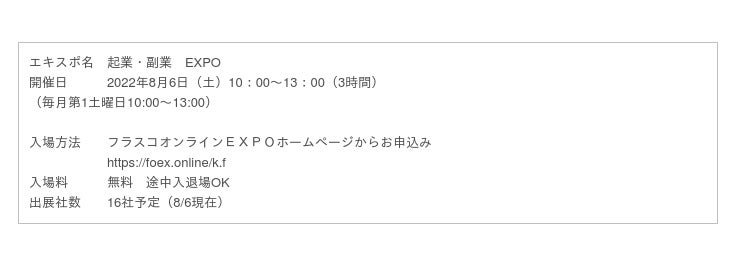 15企画目になる「起業・副業EXPO」をオンラインで開催します。