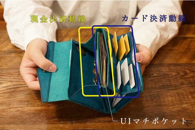 UIマチポケット内にしきりがあり、レシート・千円札/一万円・五千円札、レシート・通帳/紙幣など仕分け収納が可能です。