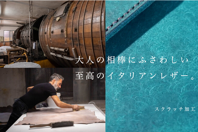 イタリアンレザー「 MARGOT/マルゴー」イタリアのVirgilio Conceria Artigiana社が製造している革で、ヨーロッパ産の上質な原皮を使用した、フルベジタブルタンニンレザーにスクラッチ(graffi)加工が施されています。