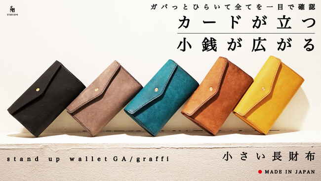 アルチザンファクトリー(所在地:埼玉県、代表:黒田 憲司)のブランド STUDIUM/ストゥディウムから「カードが立つ/小銭が広がる」小さい長財布 『スタンドアップウォレットGAグラフィー』をクラウドファンディングサイト Makuake(マクアケ)にて2022年10月11日よりプロジェクト開始しました。