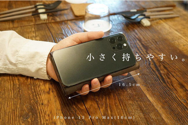 お札のギリギリサイズでは使い勝手が悪くなります。お札が引っかかり、出しにくかったり、ファスナータイプではお札の端が破れたり・・・握りやすく、ミニバックにも収まり、ズボンの後ろポケットにも収まるサイズでありながら「使いやすいコンパクト」を目指しました。スマホサイズの小さい長財布なので、ちょっとコンビニに、ちょっとランチに行く時バッグを持たず、スマホと身軽に。