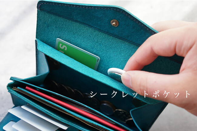 クレジットカードやIC、IDカードなど、非接触決済カードをシークレットポケットに入れておくとタッチ決済が可能となり、お支払いの時短になります。(※同種類のカードを一緒に入れると、誤作動で反応しない場合がございますのでご注意ください。)AirTag等忘れ物防止タグを入れると、なくさない財布に!