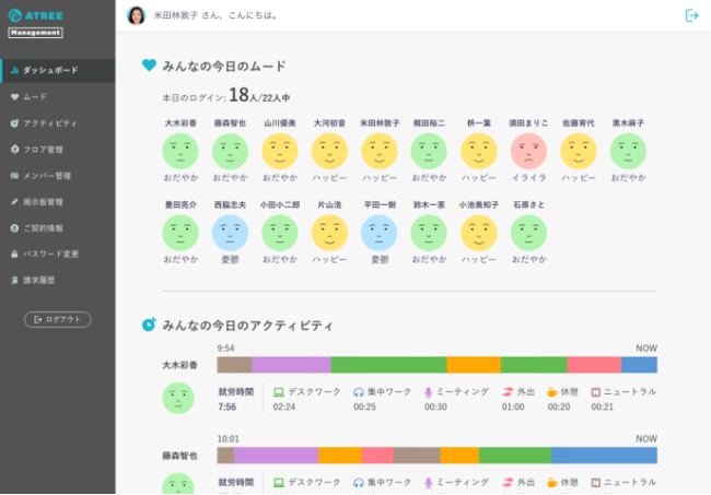 コロナ禍で急速に導入されたリモートワークは、時間や場所に制限されることなく働けるメリットがある一方で、社内コミュニケーションの減少やマネジメントの難しさといった課題があります。ATREEはそれらを解決し、円滑なリモートワークを実施するためのツールとして開発されました。