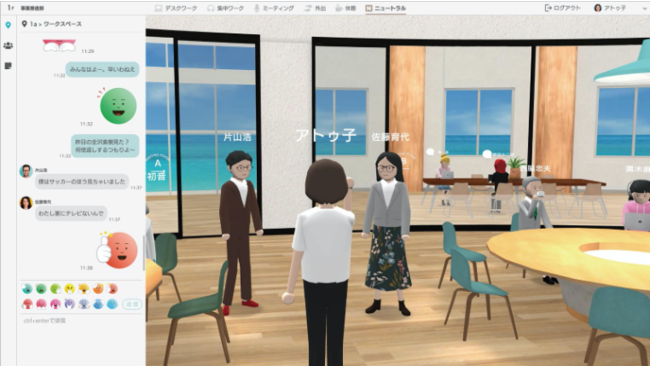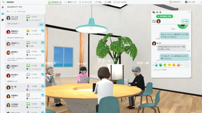 ATREEは、仮想空間上のオフィスにアバターで出社できるサービスです。