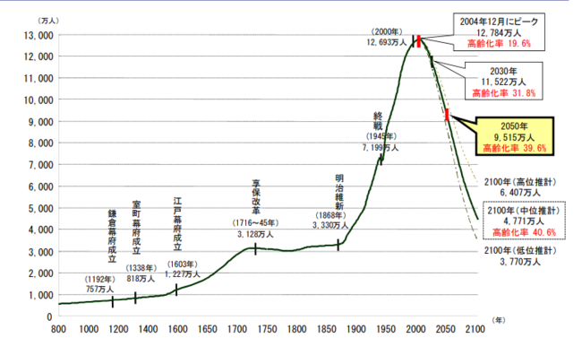 しかし、これからの日本は少子高齢化により人口が急激に減少します。