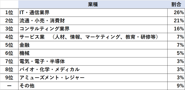■転職決定者 業種の分布 IT・通信業界、インターネットを介するビジネス分野が好調