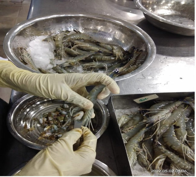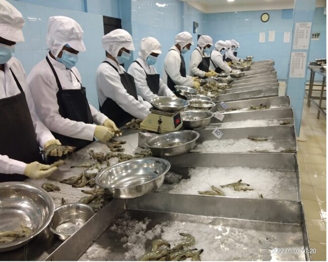 BAP認証加工工場基準の対象となったのはブラックタイガーのIQF、アイスブロック、ムキエビで年間の想定数量は約250 トン。