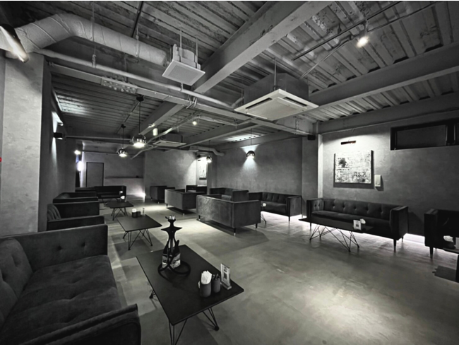 京橋駅から徒歩5分!これまでの「C.S.B」とは一味違う、グレーベースのモードで落ち着いた広々空間で、本格的なシーシャを味わうことができる。