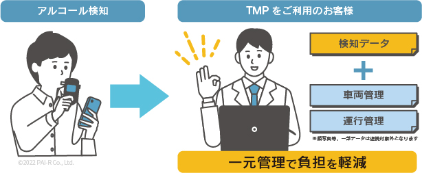 アルコール検知のデータをトヨタモビリティポータル上で一元管理できるサービスです。
