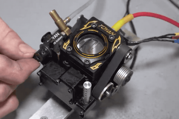 Toyan Engine FS-S100AT は燃焼室が観察可能な本格エンジンキットです。