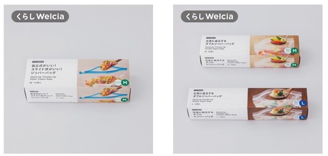 「自立式がいい!スライド式がいい!ジッパーバッグ」「立派に自立するダブルジッパーバッグ」と2022年8月12日に発売した「気軽に使ってほしいダブルジッパーバッグ」を合わせ、くらしWelciaジッパーバッグシリーズが揃いました。用途やお好みによって選べる3種類です。
