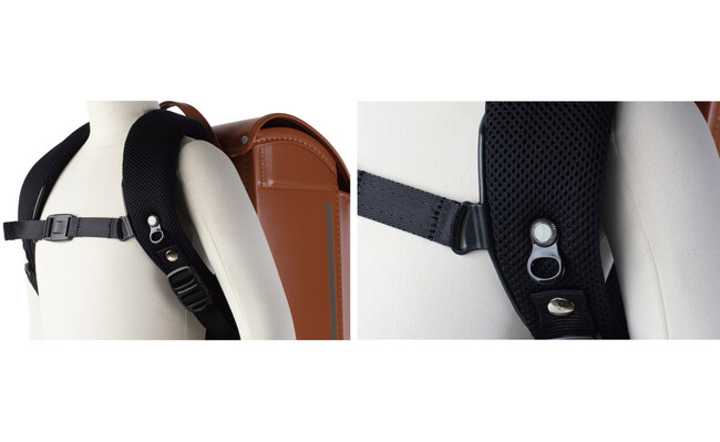 ランドセルを背負った際、チェストベルトを使用する事で肩ひものズレを防止し、体へのフィット感をアップ。