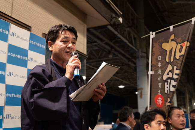 ほっとしています。嬉しいです。昨年は、残念ながらかなざわ総合市場では「輝」が出なかったので、今年は出てとても嬉しいです。一昨年も、「輝」をセリ落としましが、これを機に、加能ガニの魅力を全国の皆様に知っていただきたいと思います。