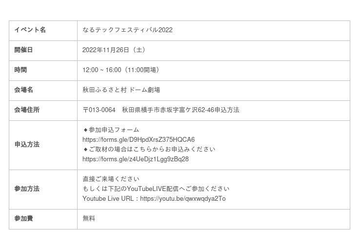 東成瀬テックソリューションズ株式会社(本社:秋田県雄勝郡東成瀬村、代表取締役社長 近藤純光、通称「なるテック」)は「なるテックフェスティバル2022(通称「なるフェス」)を開催いたします。
