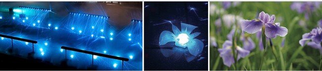 カキツバタは、「幸せは必ず来る」という花言葉をもち、みなさんの幸せを願う想いがカキツバタの光に宿り、世の中を明るく照らしますように。