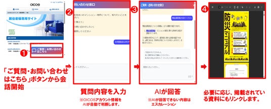 マンションフロントサービス受託事業を展開する株式会社アスク(本社:東京都中央区、代表取締役:泉澤 豊)は、マンションDX総合支援ツール「OICOS」において、生成AI技術を活用した自動応答チャット機能を開発し、提供を開始します。本機能は回答内容について、従来の一問一答入力を不要にし、資料を格納するだけでAIが回答を導き出す点が最大の特長です。
