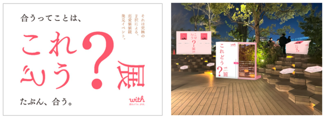 恋活・婚活マッチングサービス『with』(株式会社with、本社:東京都渋谷区、代表取締役:五十嵐昭人、以下「with」)は、東急プラザ表参道原宿とコラボし、自分や相手の恋愛価値観を発見できる展示イベント「これどう?展」を2022年4月27日(水)から2022年5月8日(日)まで期間限定で開催いたします。