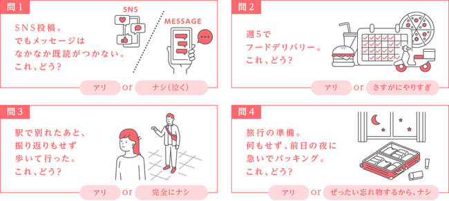 「これどう?展」は、「SNS投稿してるのにメッセージがなかなか既読にならないのは、気になる?気にならない?」「3日間連続でカレーを食べるのはあり?なし?」など、日常のよくあるシーンにおける2択問題に投票することで、自分や恋人およびパートナーの「恋愛価値観」を発見できる体験型展示イベントです。
