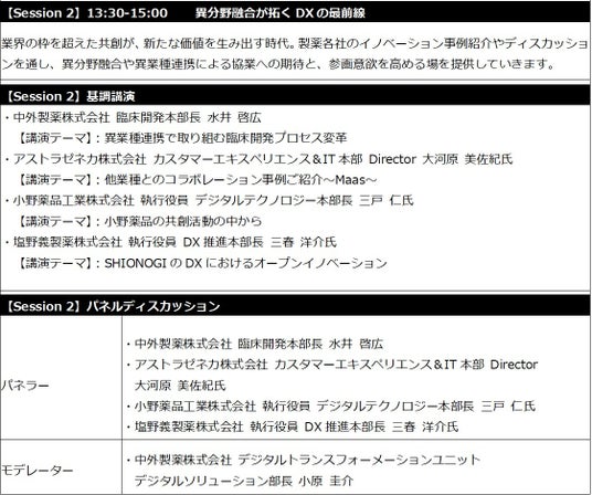 また、創薬や製薬・育薬の現場における社内での革新的な取り組みを紹介するとともに、社外パートナーとの共創によるオープンイノベーションの現状と可能性についても掘り下げます。組織や社会に変革をもたらす「共創」のきっかけを見つける一日です。