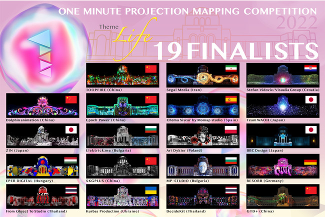 世界55の国と地域から集まった241組のエントリーより選ばれたファイナリスト作品を、重要文化財の聖徳記念絵画館をスクリーンにイベント期間中投影し、YouTubeでも配信します。2022年度のファイナリストはイラン、クロアチア、スペイン、ポーランド、ハンガリー、ドイツ、ウクライナより1組ずつ、ブルガリア、タイより2組、中国5組、そして日本から3組が選ばれ、合計19作品が選出。最終日には授賞式を実施し、グランプリ他、優秀作品を表彰し、その様子を全世界へLIVE配信します。