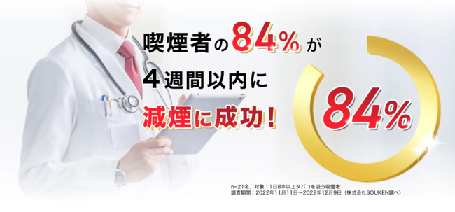 「喫煙者の84%が4週間以内に減煙に成功!」