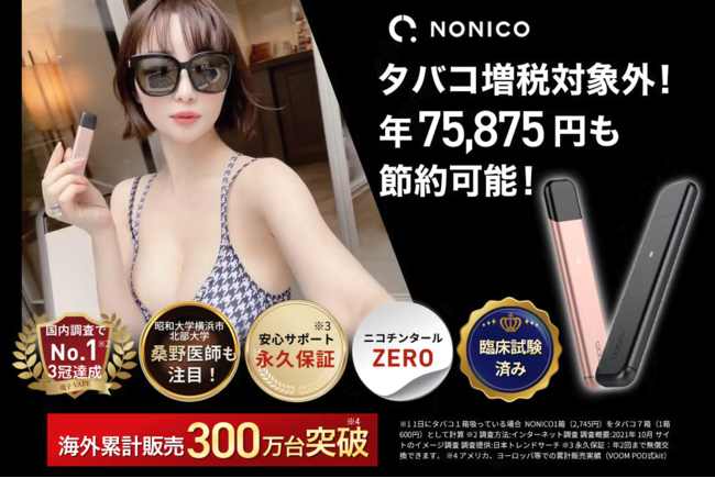 この度、第三者機関である株式会社SOUKENの臨床試験にて、株式会社Nonicoの手掛ける電子タバコ「NONICO(ノニコ)」による様々な効果が立証されました。