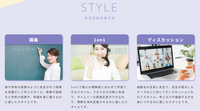 ただオンライン上でで知識やスキルをインプットするだけではなく、ライブのクラス上で行われるディスカッションを通じて、非認知能力(コミュニケーション力・思考力)を身に付けることが期待できます。