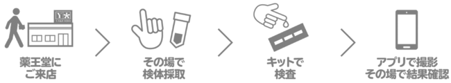 薬王堂の店頭その場で、気軽に簡単に素早く健康チェックができるサービスです。お客さま自身で検体採取するサービスとなりますが、スタッフが立ち会いますので安心して測定が可能です。