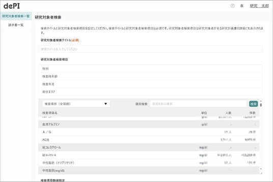 現在、対象データ検索までを研究者にて管理画面上で行っていただけますが、今後は研究情報の登録や研究開始までのお手続きなど実施した研究の管理機能をリリース予定です。また、問診データや処方箋データも研究にご活用いただけるよう日々データの整備を行ってまいります。