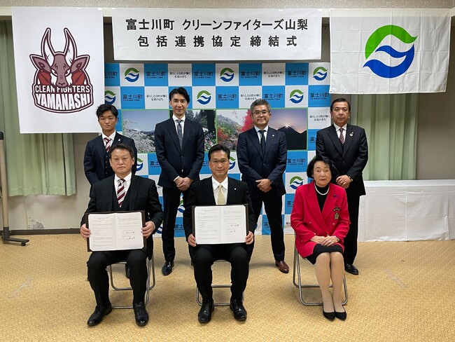山梨県を拠点とする社会人ラグビーチーム、一般社団法人クリーンファイターズ山梨(本部所在地:山梨県甲府市、代表理事:山本正卓、以下CF山梨)は本日、山梨県富士川町(町長 望月利樹)との協力関係をより一層強化した包括連携協定を締結したことを発表します。