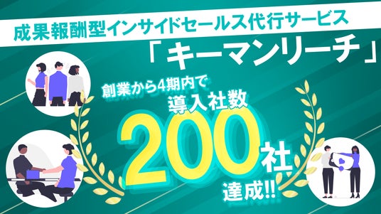 株式会社セカツク(本社:東京都千代田区、代表:若井田徹)は、成果報酬型インサイドセールス代行サービス「キーマンリーチ」の利用企業数が、目標としていた「創業5年で導入社数200社に到達」を、創業から4期内で達成したことをお知らせします。