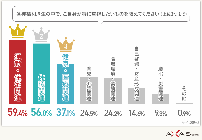 ・1位 通勤・住宅関連/2位 休暇関連/3位 健康・医療関連
