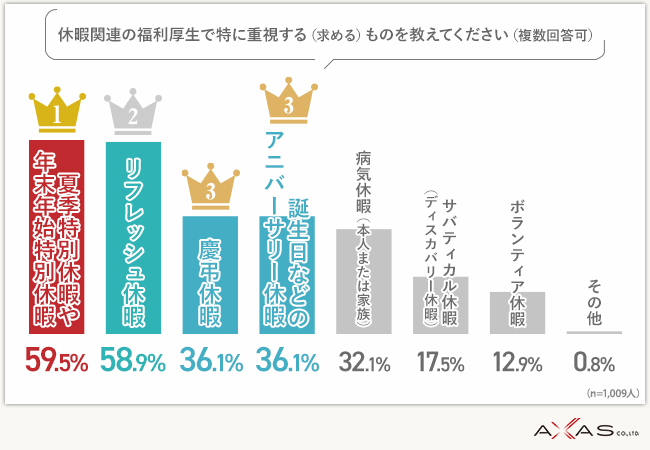 Q:休暇関連の福利厚生で特に重視する(求める)ものを教えてください(複数回答可)