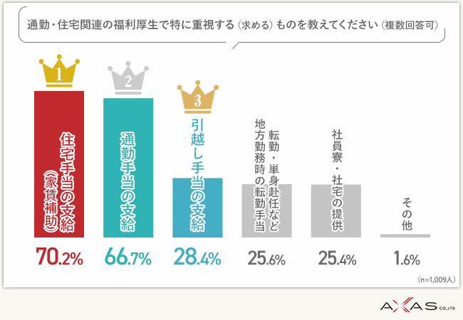 1位〈通勤・住宅関連〉金銭面で負担の大きい『住宅手当(家賃補助)』を求める方が最多