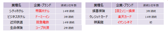 ※各業種のランキング対象企業のうち、原則として中央値以上の企業・ブランドを表示
