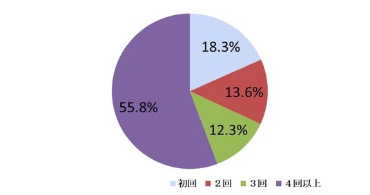 車検館をこれまで利用された回数を聞いたところ、全体の55.8%が「4回以上」と回答されています。当社のリピート率は86.0%と高い値を誇っていますが、半数以上のお客さまに「車検・整備を受けるなら車検館」と思っていただき、何度もご利用いただいていることが明らかとなりました。