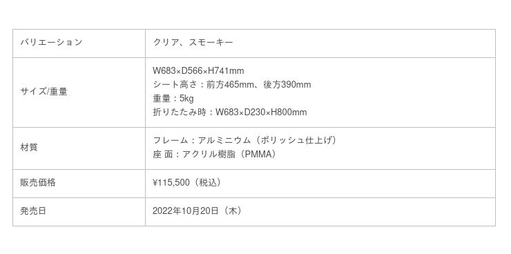 プリアチェアにはない、丸みを帯びた座面に体がぴったりフィット。独特なシートフォルムを透明感のある美しい材質が際立たせます。
