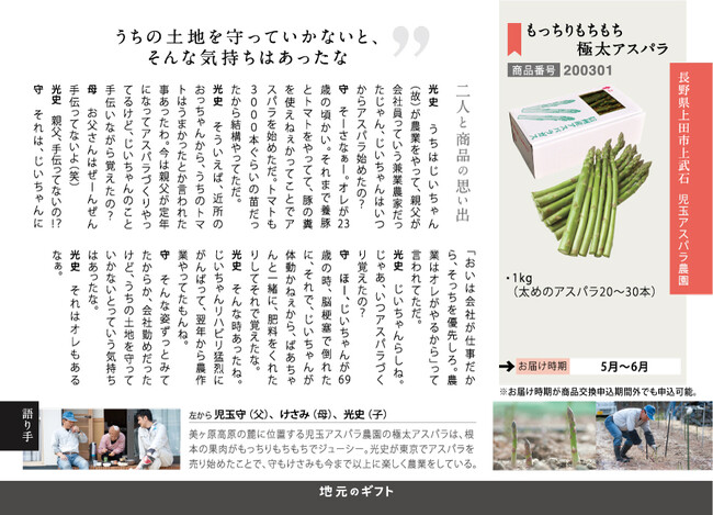 商品カードには、地元カンパニーが取材したつくり手の物語や写真も掲載され、1枚につき1つの商品をご紹介しています。