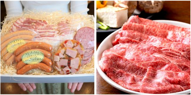 (2)抽選で、届いた商品を投稿していただけるくれる方 5名 に、「すきやき用おいしいお肉」またはか 「おつまみにぴったりソーセージセット」のどちらかをプレゼント