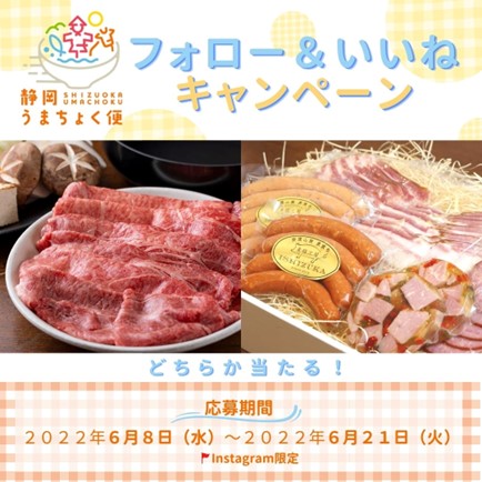 株式会社村の駅(所在地:静岡県三島市)が運営する、産地直送型の通販サイト「静岡うまちょく便」は、6月8日(水)から、『静岡のうまい!で繋がるプロフェクト』の一環として「Instagram フォロー& いいね キャンペーン」を実施いたします。