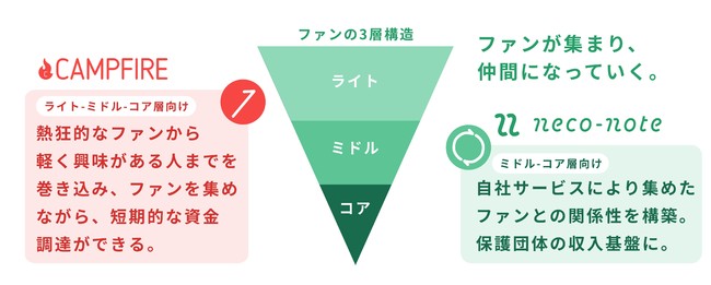 さらに、ネコノテが運用する猫の推し活サービス『neco-note(以下、ネコノート)』を使い、集めたファンから毎月定額で支援をいただける仕組みを構築。ファンを中心とした中長期的な収入基盤を構築することで、保護猫団体の”自続性”向上を実現します。