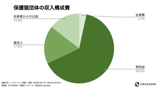 近年、日本では保護猫団体の運営の人手は慢性的に不足しており、スタッフの高齢化も進んでいます。また、収入の8割ほどを寄附金や他事業からの出資金が占めており(※)、資金の枯渇も問題になっています。こうした社会問題を解決するために、クラウドファンディング支援事業をネコノテは始めました。